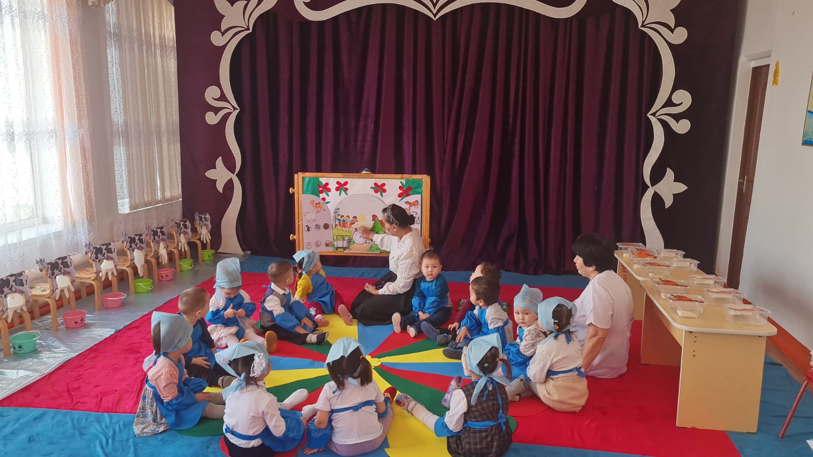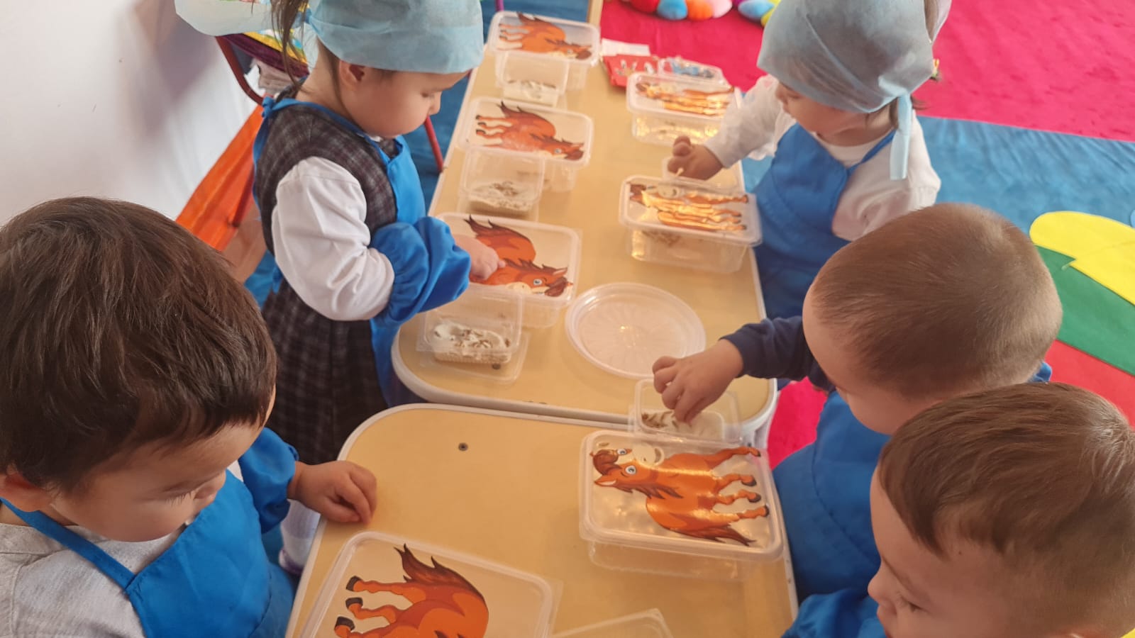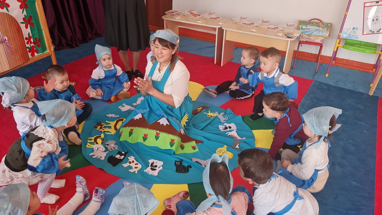 Ашық іс - əрекетін ұйымдастыра отырып, тəрбиеші балалардың коммуникативтік, танымдық жəне зияткерлік, шығармашылық дағдыларын дамытты.