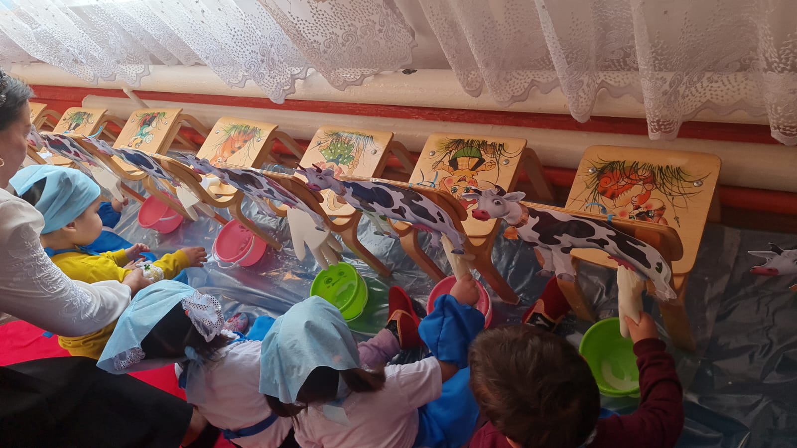 Осы міндеттерді алға қоя отырып, тəрбиеші іс - əрекетті ойын түрінде ұйымдастырды."Жұмбақ есік", "Дыбысын таны", "Көк тракторда не бар?","Жылқыға жем береміз" ,"Сиыр сауамыз","Əдемі қозы","Лақтың көлеңкесі" ,"Қандай жануар?"ойындары арқылы балалар барлық тапсырмаларды жақсы орындап, ойындарды қызығушылықпен ойнап, тəрбиеші жақсы нəтижеге қол жеткізді.