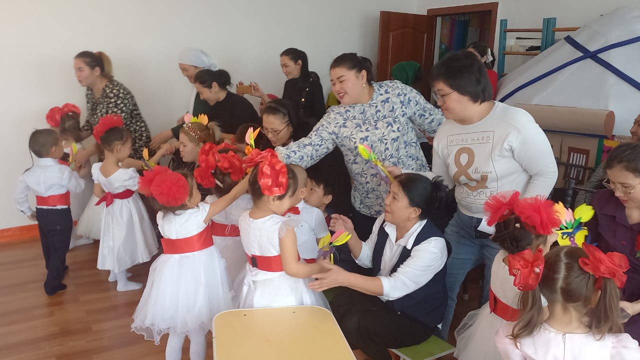 те топ балалары өлең шумақтарын айтып, би-билеп, əннен шашу шашып аналарын қуантты. Өз қолдарымен жасалған аналарына сыйлықтарын тарту етті.Аналардың қуанышында шек жоқ.