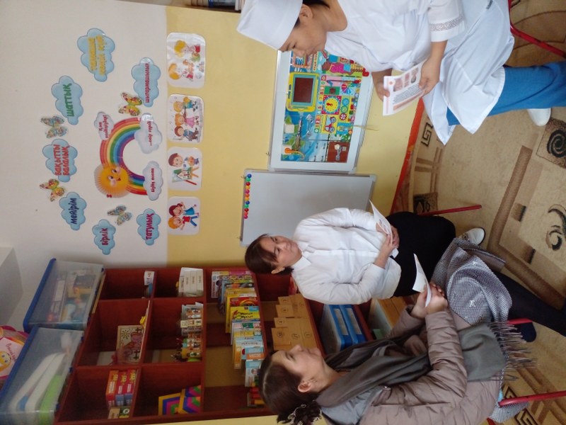 N1санаториялық бөбекжай-бақшасы медбикесі Алдамжарова Жанагуль Қожабергеновна бөбекжай-бақша ата-аналары мен қызметкерлерін қызылша ауруы жайлы ақпараттандырып, брошюралар таратты.