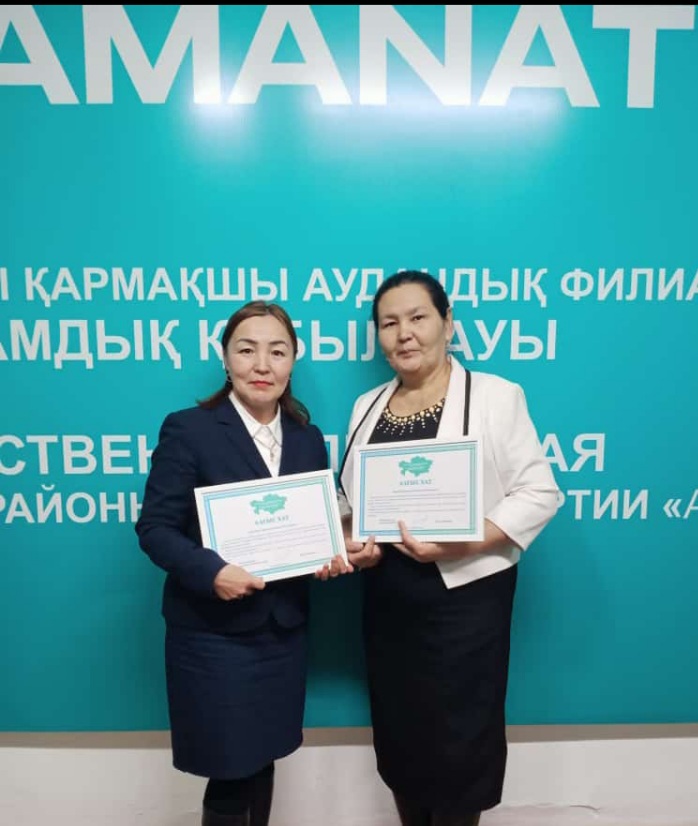 ҚҰТТЫҚТАЙМЫЗ!!!🎉🎉🎉 Қазақстан Республикасы Президентінің кезектен тыс өткізілген сайлауында аудан белсендісі есебінде, Қасым-Жомарт Кемелұлы Тоқаевты қолдау жөніндегі сенімді өкілі, үгіт-насихат жұмысына белсене атсалысқаны үшін N1санаториялық бөбекжай-бақшасы əдіскері Сармолдина Балхия Егембердіқызы жəне бөбекжай-бақшасы тəрбиешісі Нұрханова Күлдарай Көшекқызы Республикалық қоғамдық штаб жетекшісі Ерлан Қошанов мырзаның атынан Алғыс хатпен марапатталды. Марапаттарыңыз құтты болсын! Абыройлы болыңыздар!🎉🎉🎉