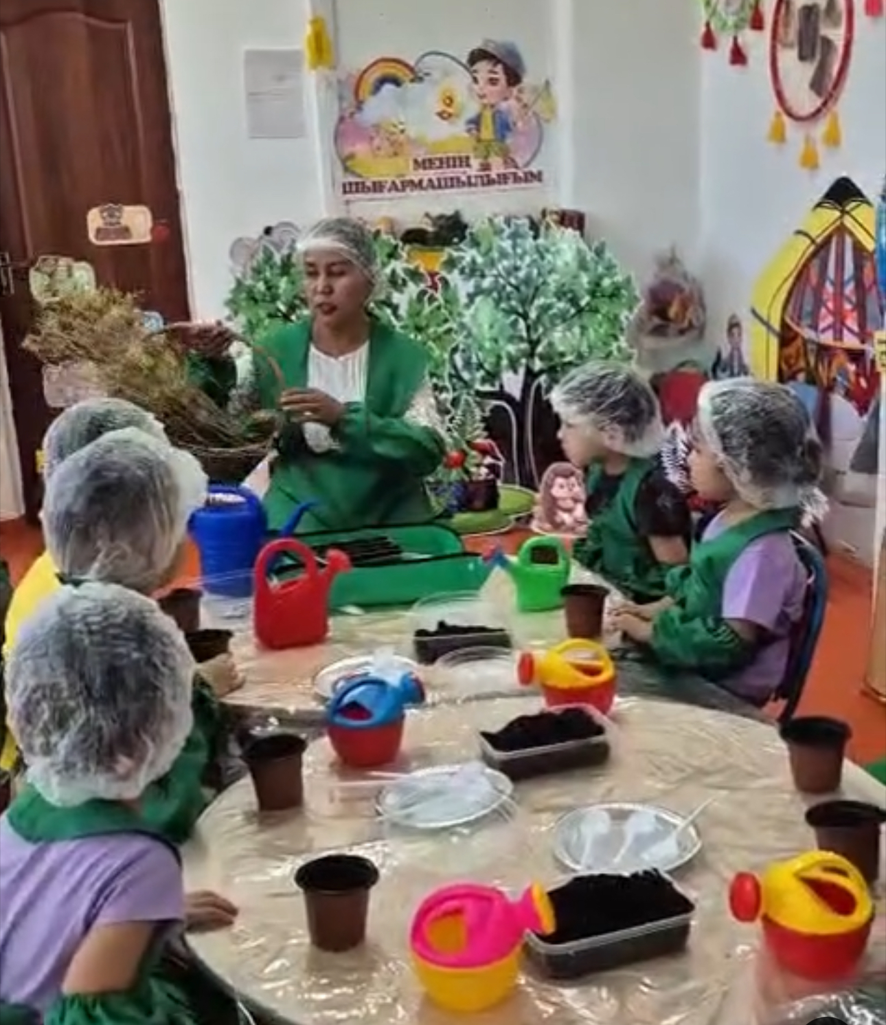 жобасы аясында Ересек”Қызғалдақ” топ тәрбиешісі Сариева Майгүл Кеңесқызы топ тәрбиеленушілері мен бірге денсаулыққа пайдалы аскөктерді егу жұмыстарын жалғастырып, бөлме ішіндегі жылыжайға орналастырды.