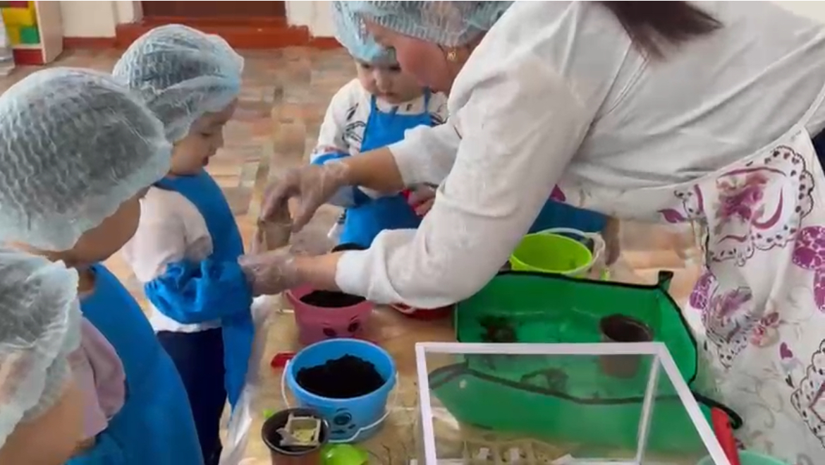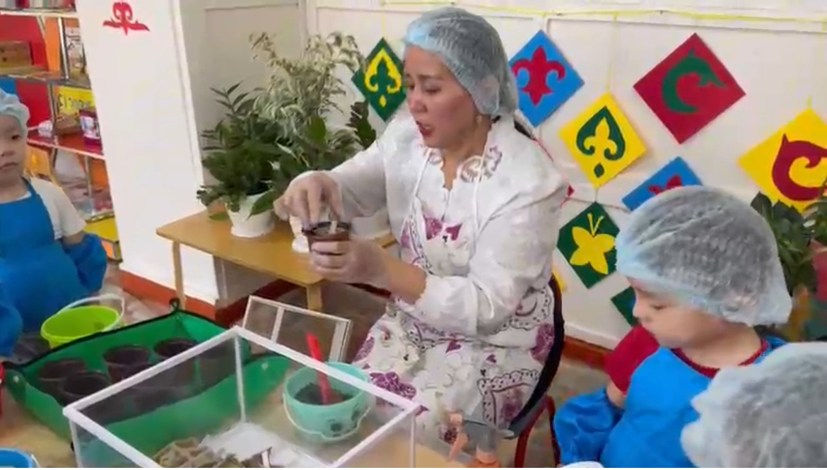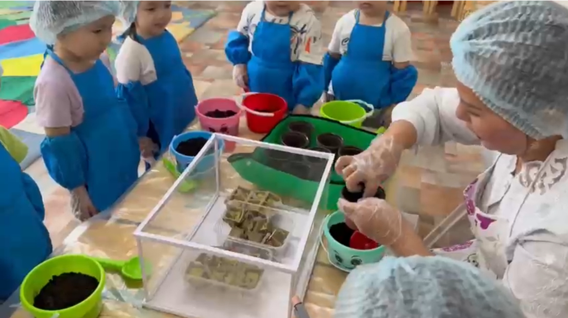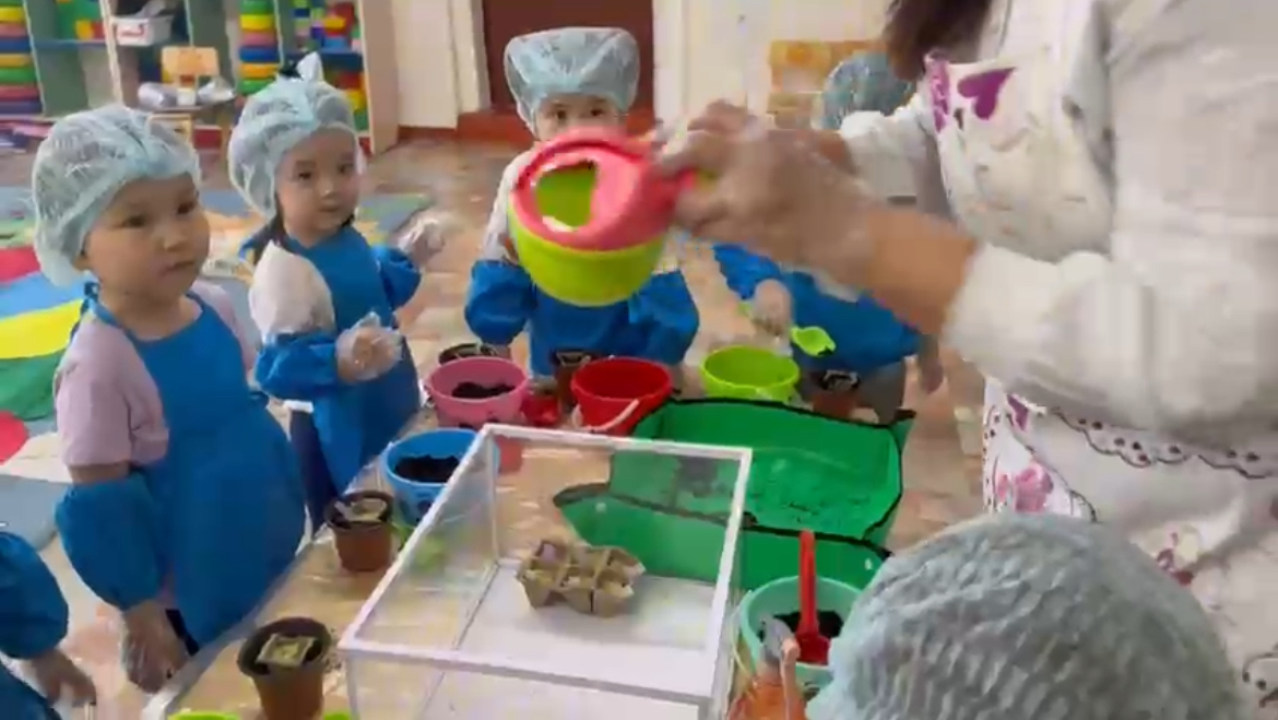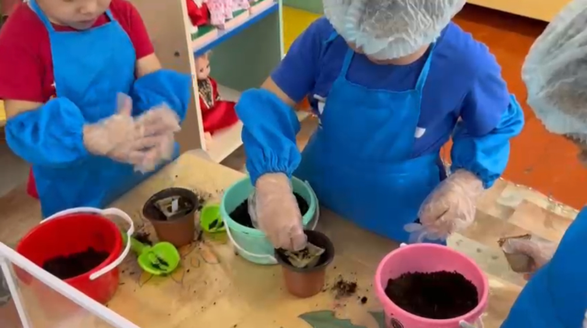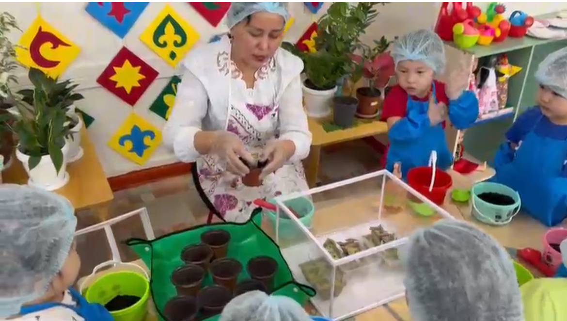 “Жасыл әлем-кішкентай зерттеушілер”тақырыбындағы жоба аясында Ботақан “Ортаңғы” топ тәрбиеленушілері гүл тұқымдарын егу жұмыстарын жалғастырып, бөлме ішіндегі жылыжайға орналастырды.