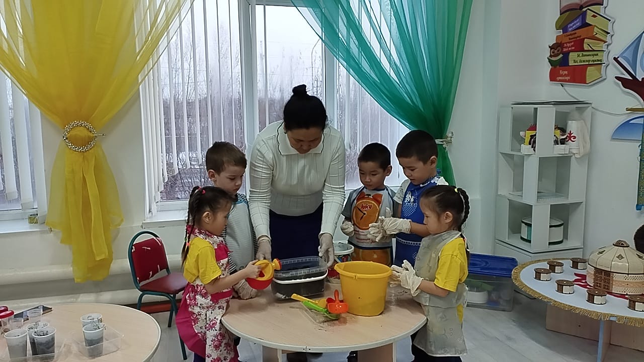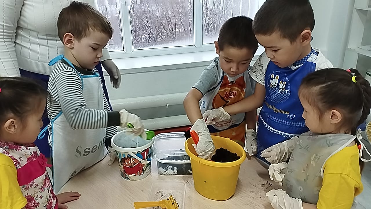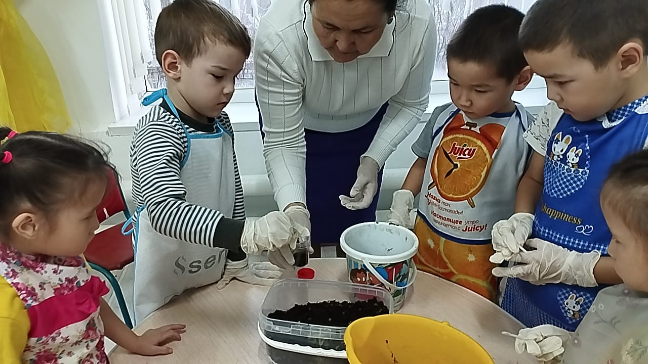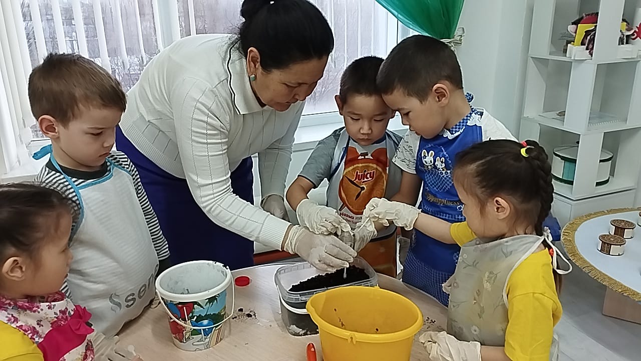 “Жасыл әлем-кішкентай зерттеушілер” тақырыбындағы жоба аясында Мектепалды “Шапағат” топ тәрбиеленушілері достарымен бірге күнделікті тағамға қажетті аскөктер тұқымдарын егу жұмыстарын жалғастыруда