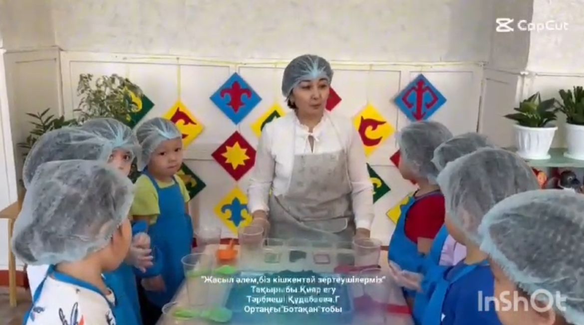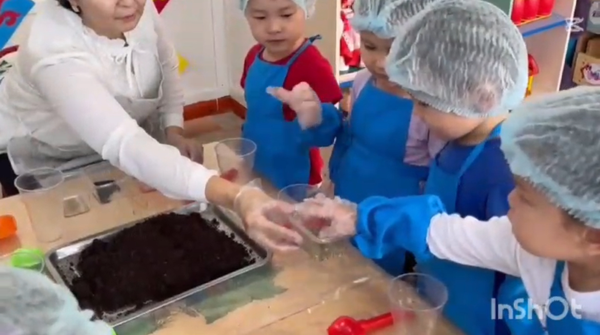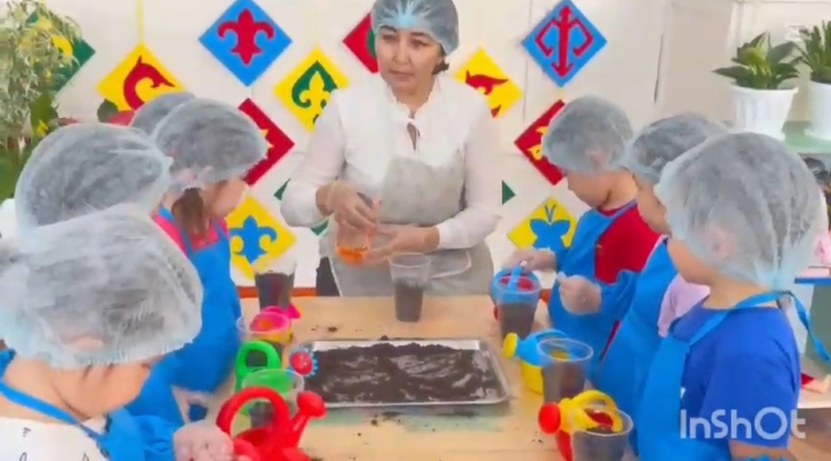 “Жасыл әлем-кішкентай зерттеушілер”тақырыбындағы жоба аясында Ортаңғы “Ботақан” топ тәрбиеленушілері топ тәрбиешісі Құдабаева Гүлзира Бектасқызымен бірге тұқым түрлерімен танысып, арнайы қияр тұқымын егу жұмыстарын жалғастырды.