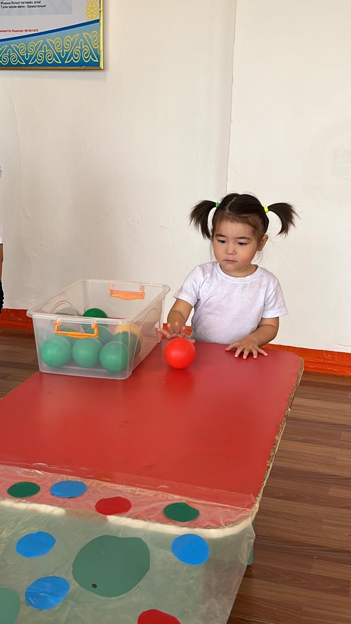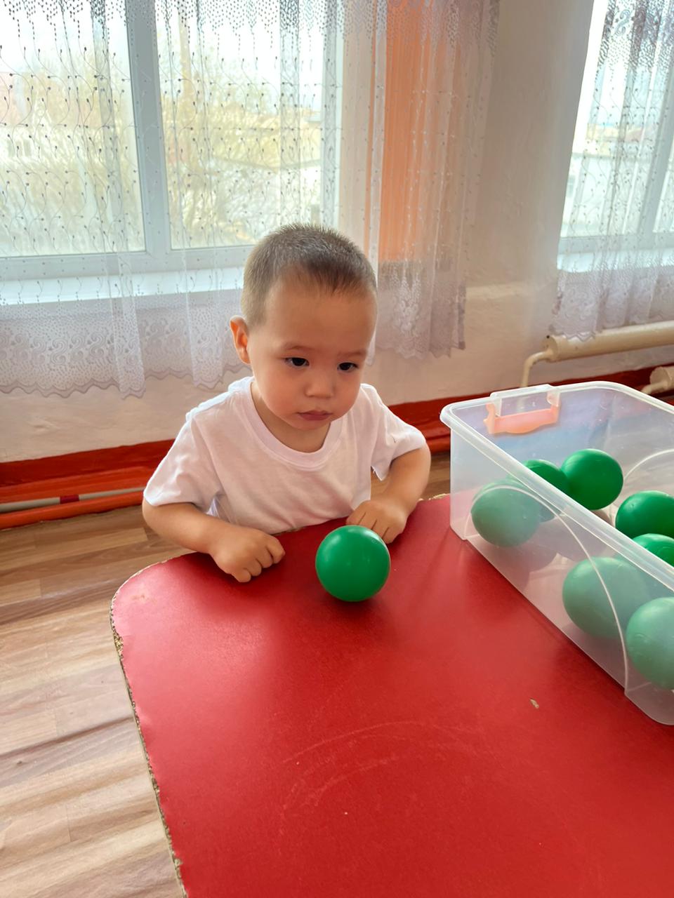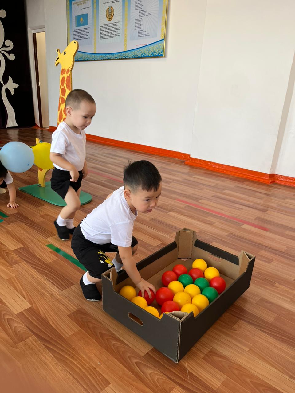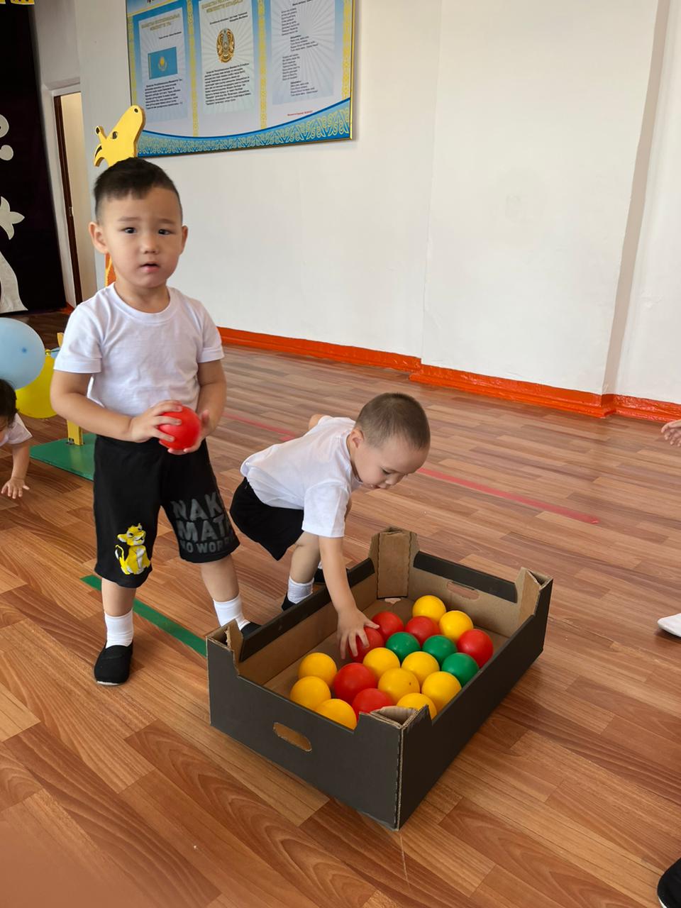"Допты домалат","Қасқыр мен қояндар" ойындарын қызығып ойнады.Түрлі-түсті доптарды түстеріне қарай балалар өте жақсы ажырата білді.Балалар қуанып, шаттанып ойындарды жақсы ойнады.