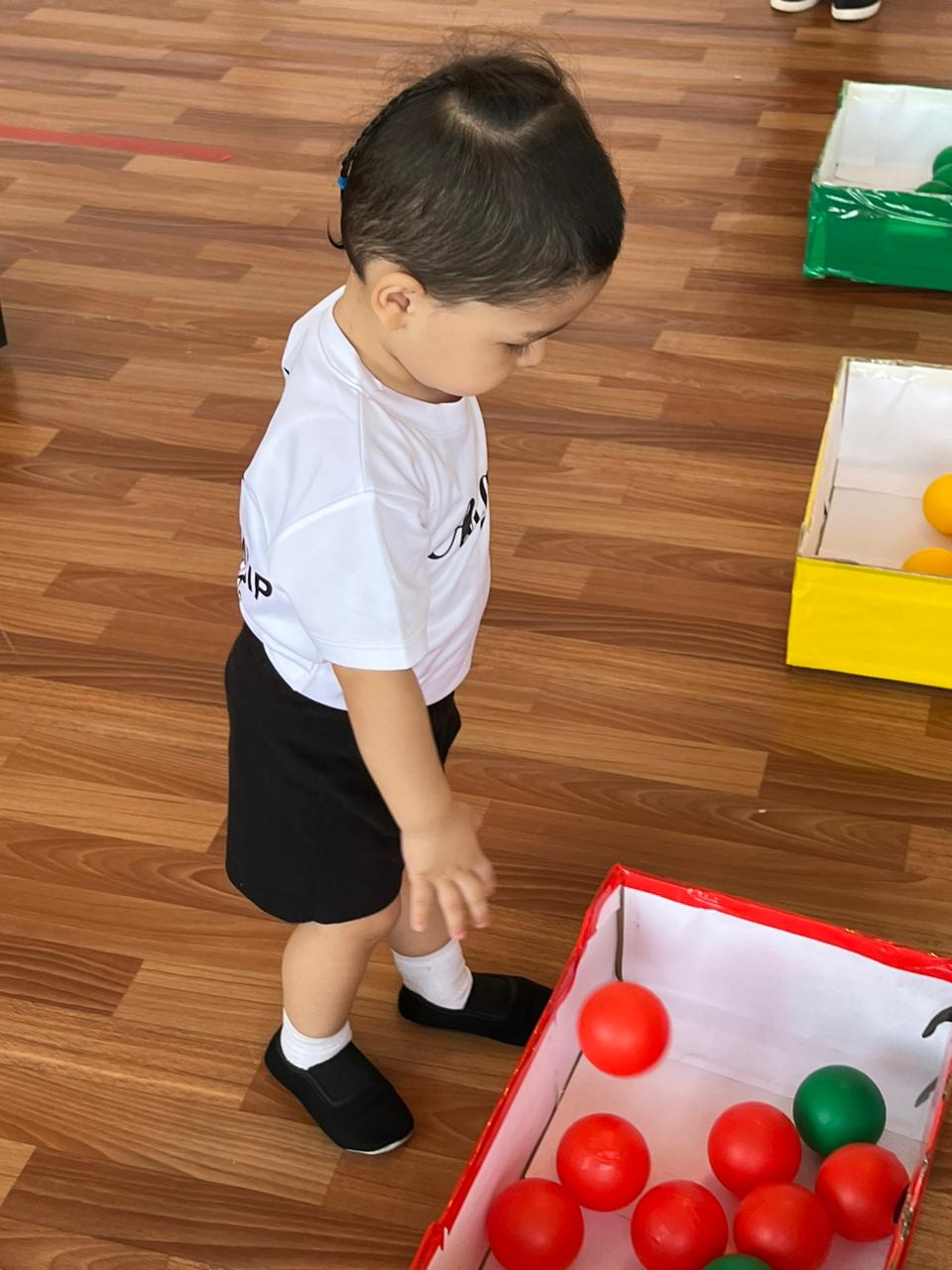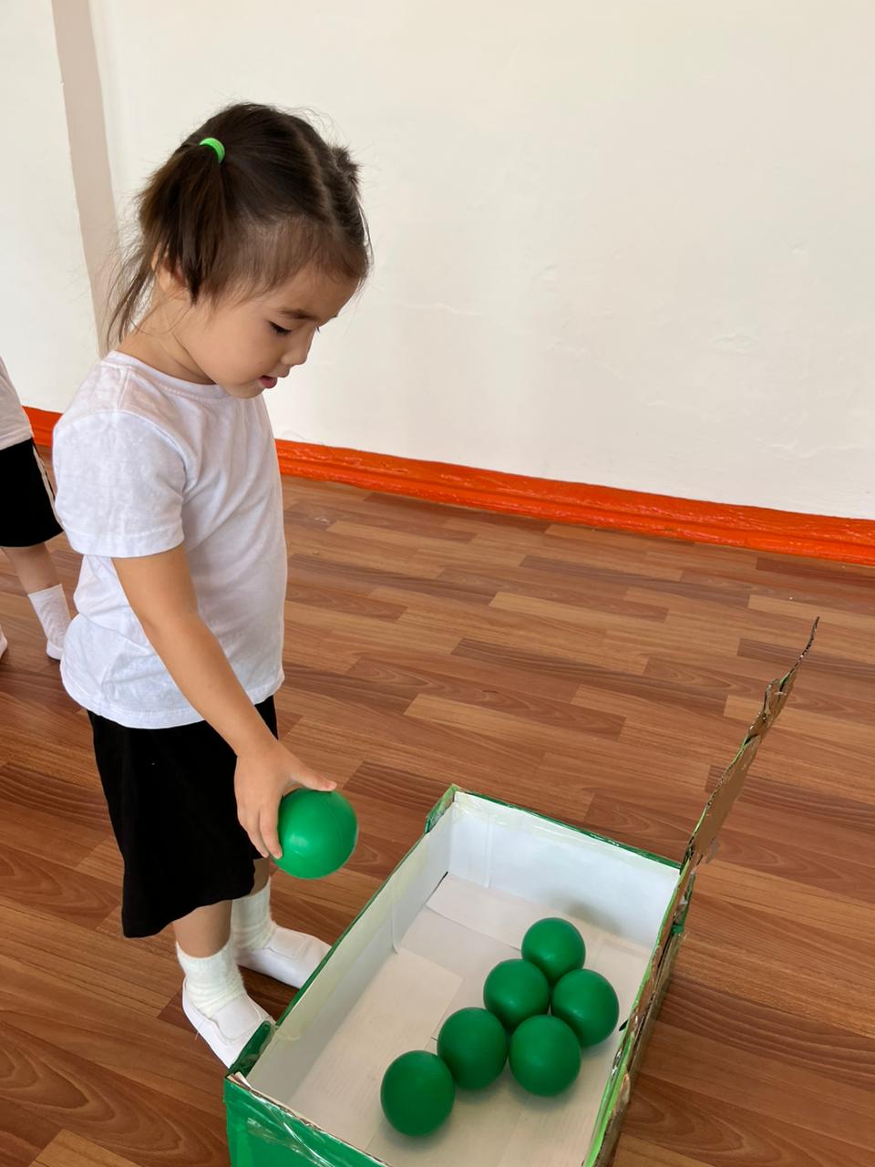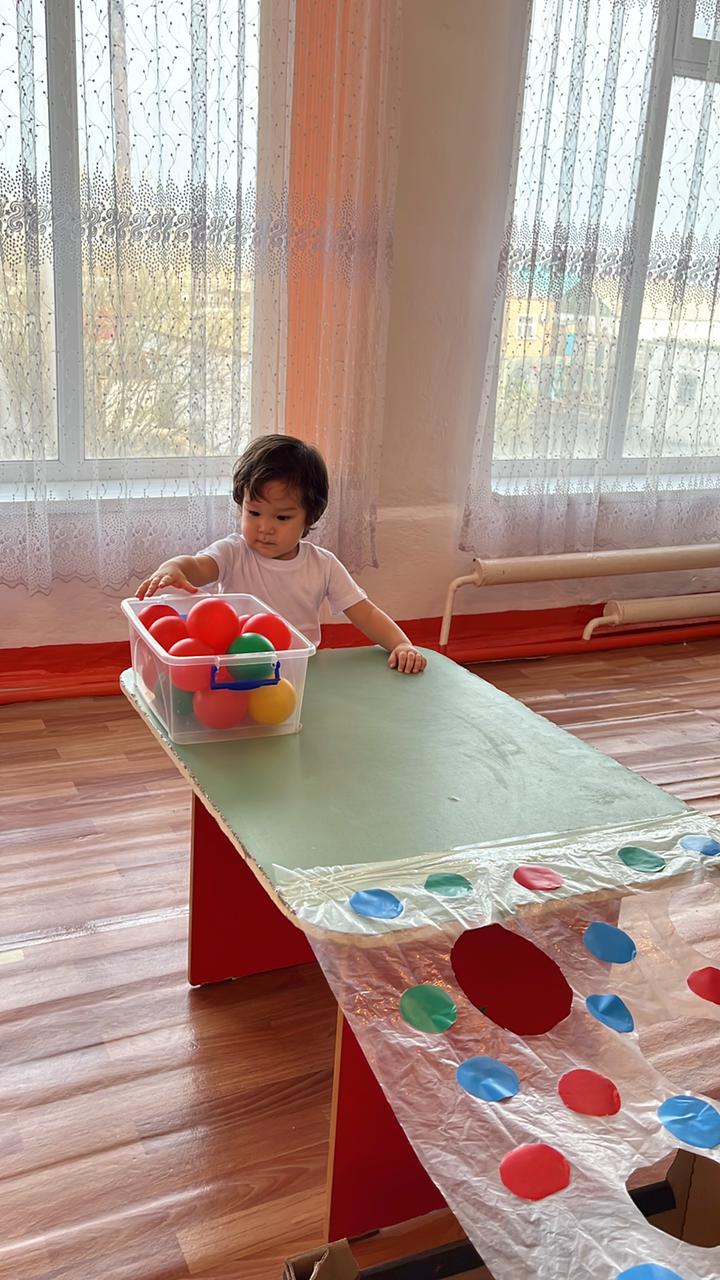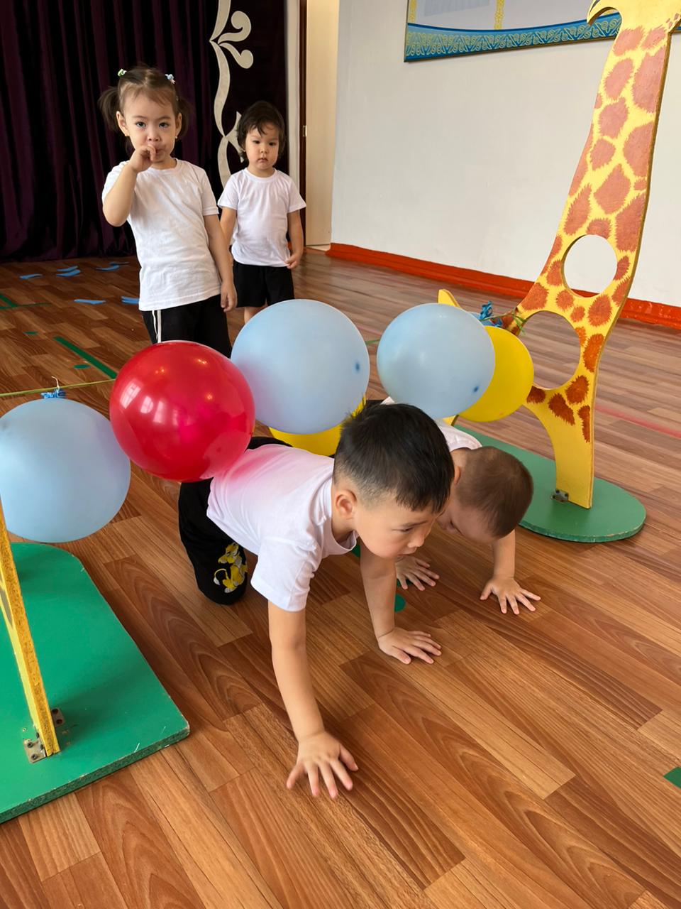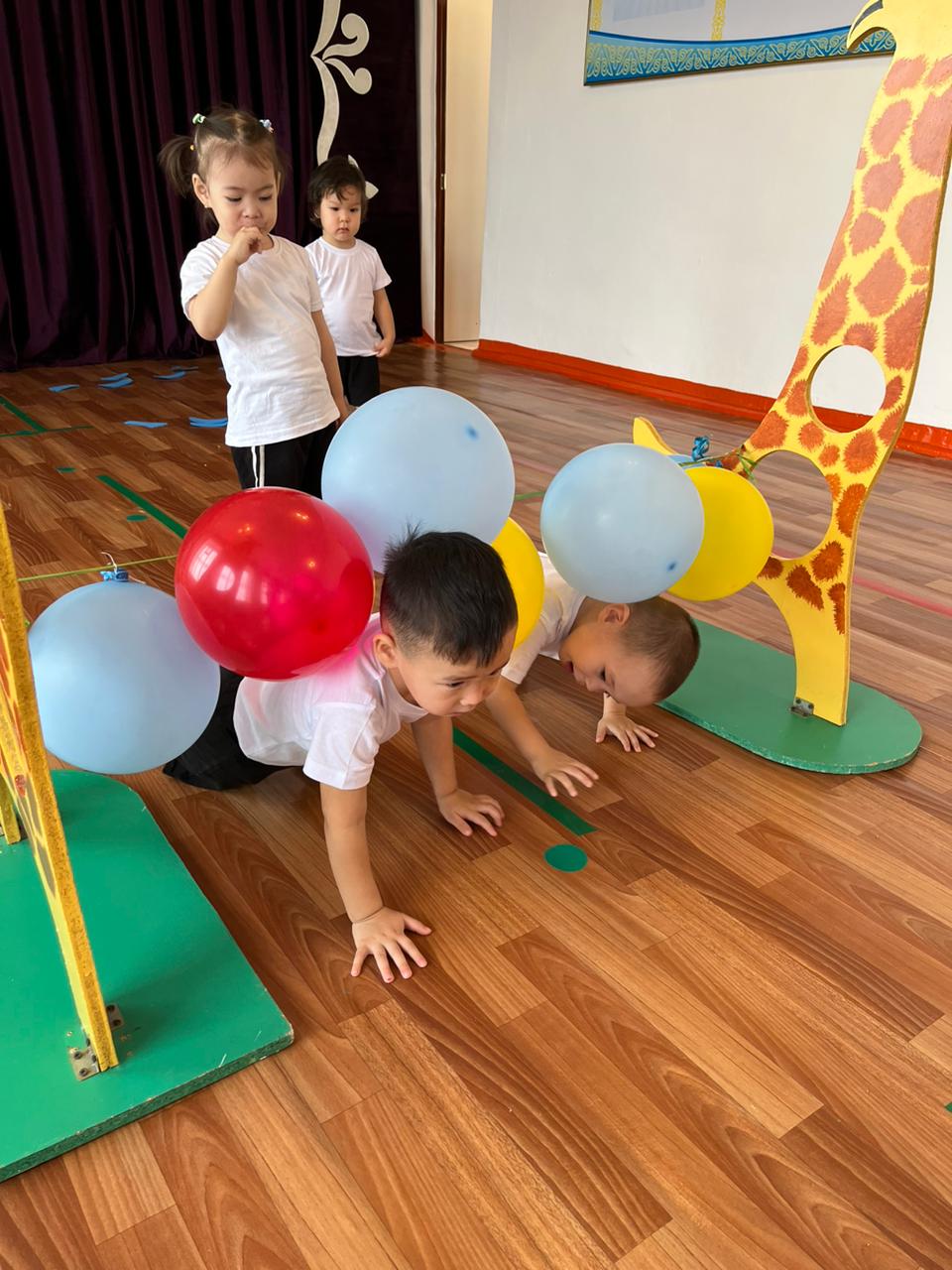 "Допты домалат","Қасқыр мен қояндар" ойындарын қызығып ойнады.Түрлі-түсті доптарды түстеріне қарай балалар өте жақсы ажырата білді.Балалар қуанып, шаттанып ойындарды жақсы ойнады.