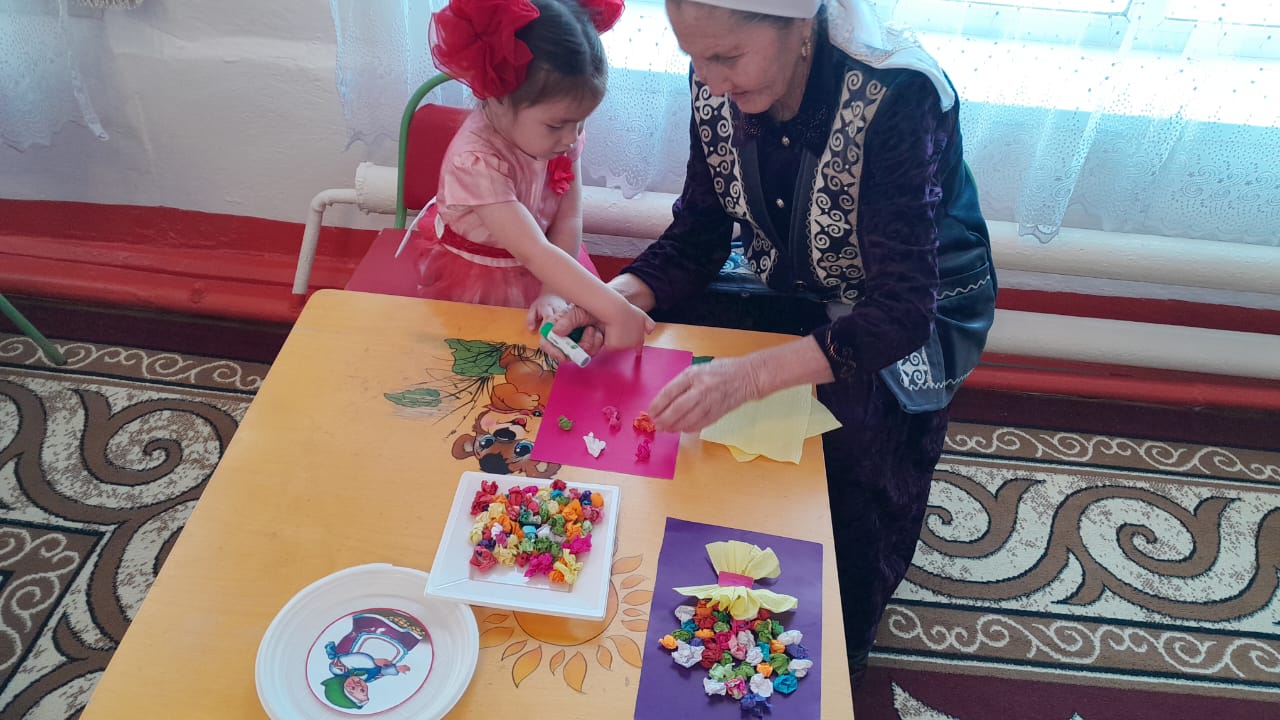 Нəтижесінде əжелеріміз түрлі қол өнер бұйымдарын жасап көрсетіп, немерелеріне жасалу жолдарын үйретіп, бүгінгі күні көрерменге тамаша əсер қалдырды.