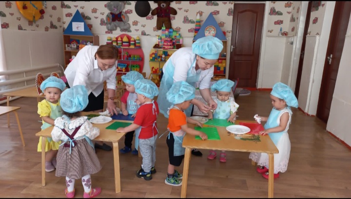 1 санаториялық бөбекжай-бақшасы "Балапан" ерте жас тобының тəрбиешісі Шамшаева Лайлагүл Адиятуллақызы " Нан өнімдері", " Бауырсақ" тақырыптарында кіріктірілген іс-əрекетін ұйымдастырды
