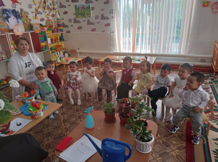 1 санаториялық бөбекжай-бақшасының "Аққоян" ерте жас тобының тəрбиешісі Құдабаева Гүлзира Бектасқызы "Бөлме өсімдіктерін күтіп баптау", "Күрекшенің сабы" тақырыптарында кіріктірілген іс-əрекетін ұйымдастырды