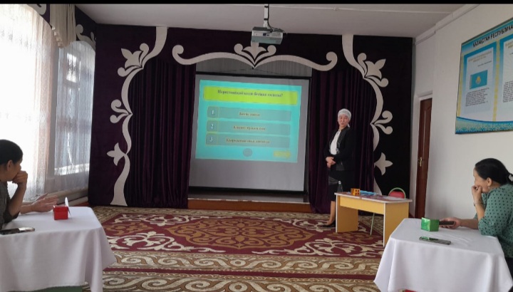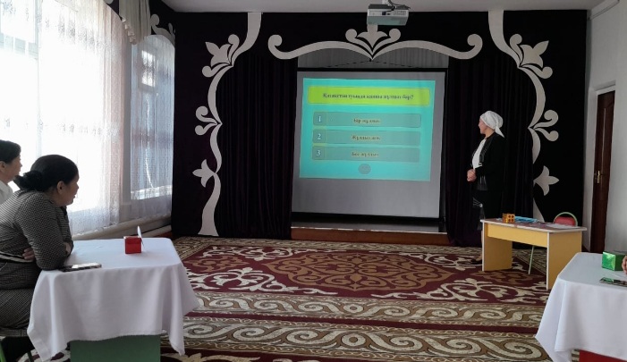 Танымдық ойынға ата-аналар белсенді қатысып, өздерінің ұшқыр ойлы екендіктерін көрсетіп, жасаған жұмыстарын дəлелдеді.Қойылған əрбір сұрақтарға ұтымды жауап бере отырып, екі команда ата-аналары жақсы жұмыс көрсетіп, бүгінгі күннен керемет əсер алды.Ойын соңы марапаттауларға ұласып, ата-аналарға алғыс білдірумен аяқталды.