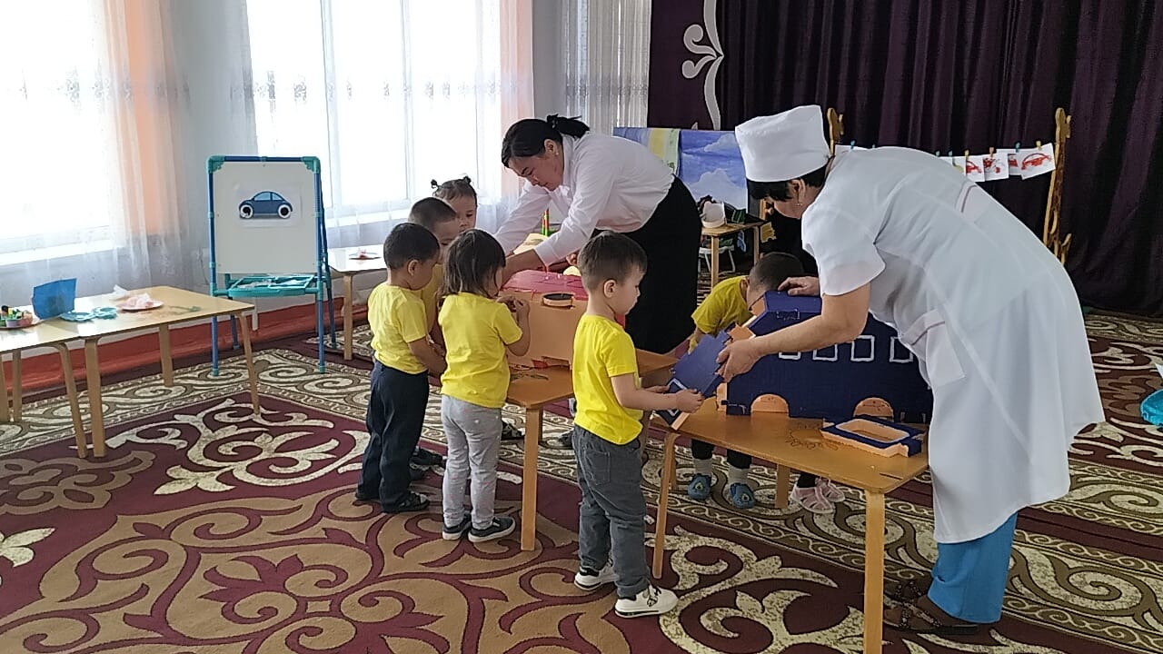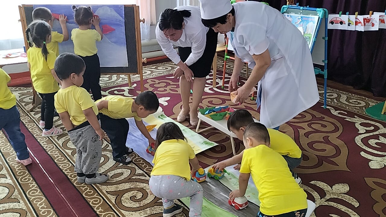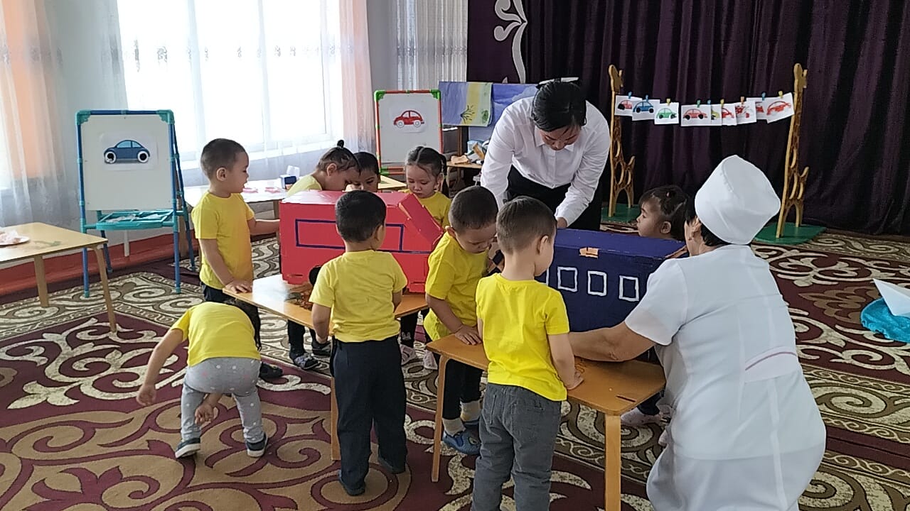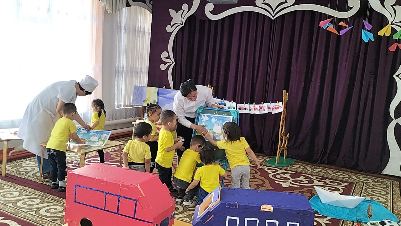 "Ботақан ' кіші топ тəрбиешісі Базарбаева Роза Нұрланқызы " Көлік түрлері" тақырында балалардың коммуникативтік, танымдық жəне зияткерлік, шығармашылық, физикалық, əлеуметтік-эмоционалды дағдыларын дамыта отырып, сөйлеуді дамыту, сенсорика, сурет салу, құрастыру, жапсыру ашық ұйымдастырылған іс-əрекетін өткізді.