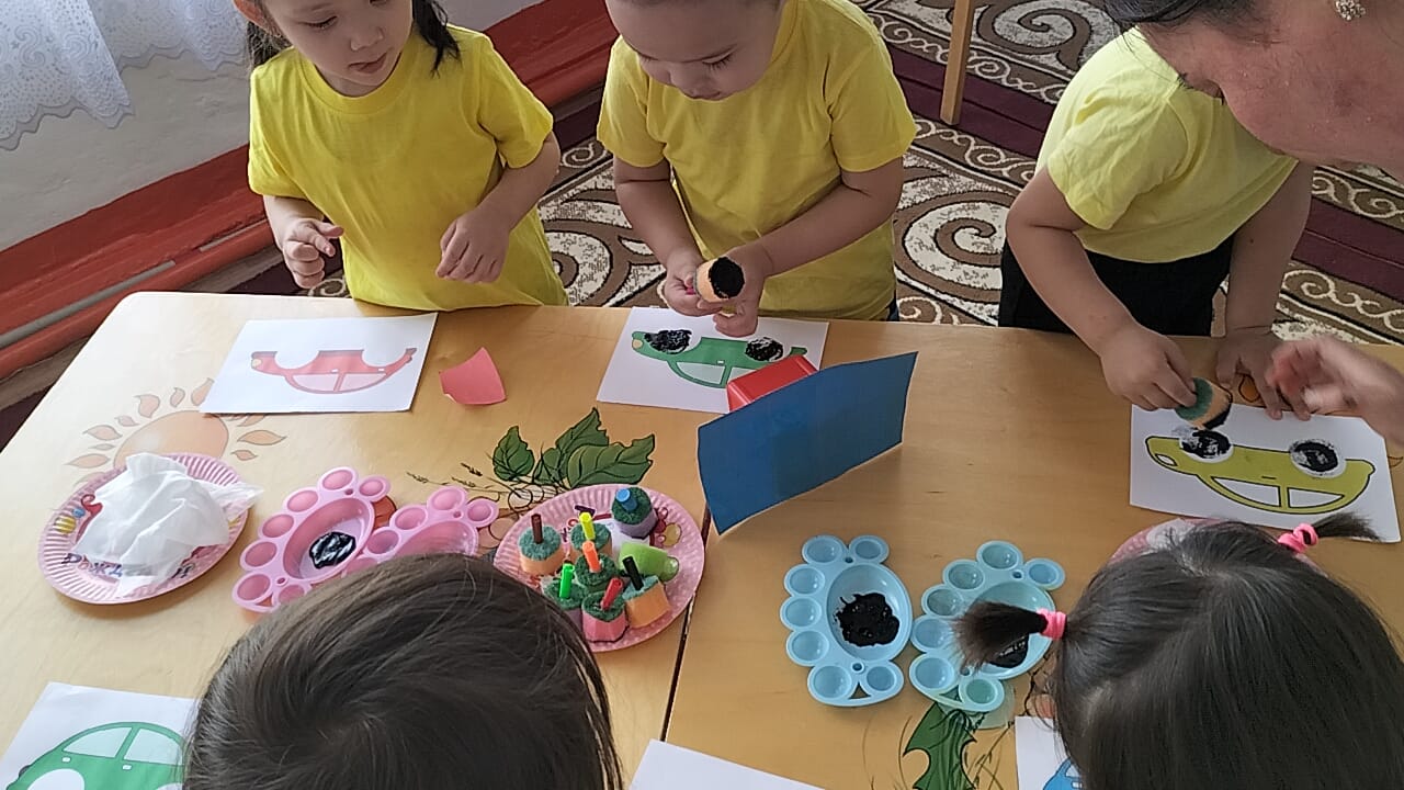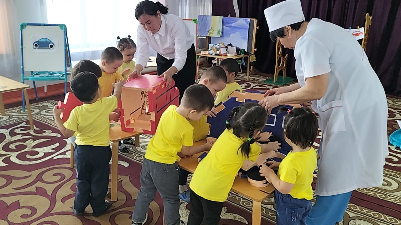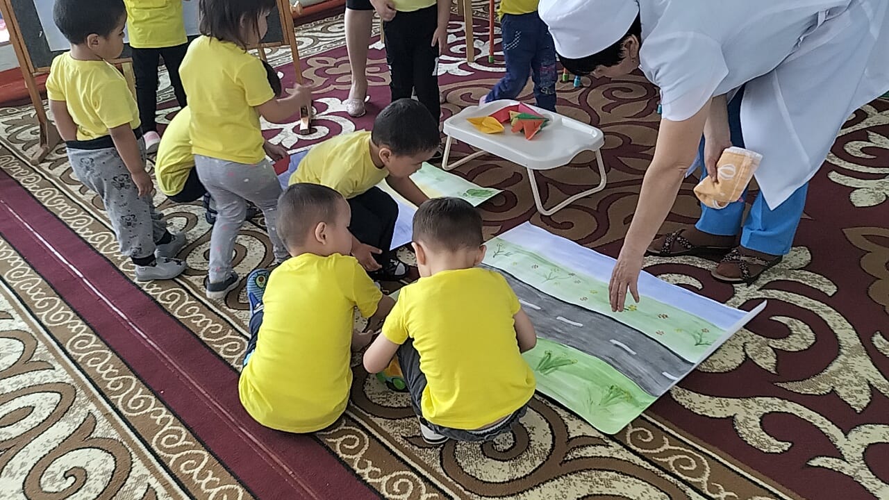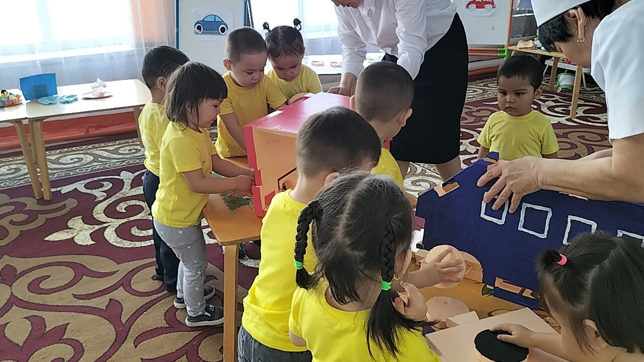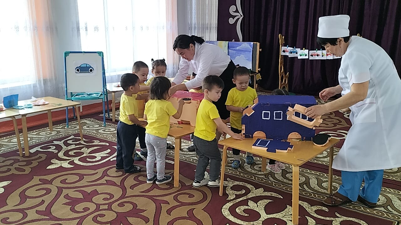 "Ботақан ' кіші топ тəрбиешісі Базарбаева Роза Нұрланқызы " Көлік түрлері" тақырында балалардың коммуникативтік, танымдық жəне зияткерлік, шығармашылық, физикалық, əлеуметтік-эмоционалды дағдыларын дамыта отырып, сөйлеуді дамыту, сенсорика, сурет салу, құрастыру, жапсыру ашық ұйымдастырылған іс-əрекетін өткізді.