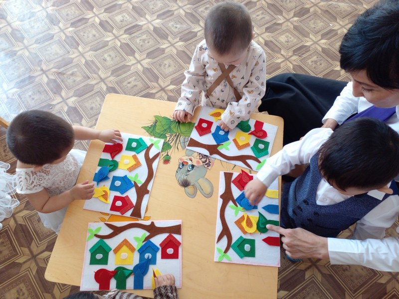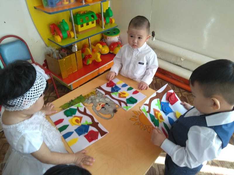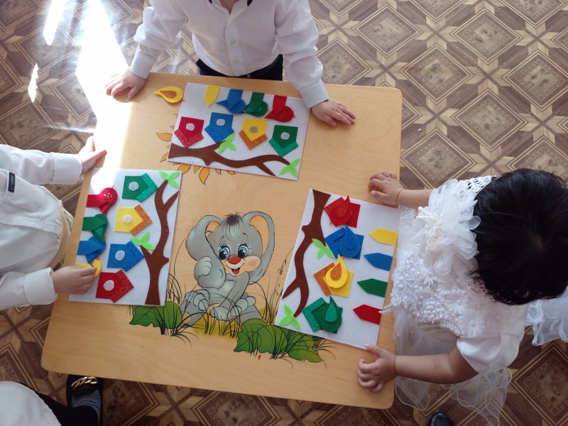 - негізгі төрт түсті( қызыл, сары, жасыл, көк) ажыратуды үйренді