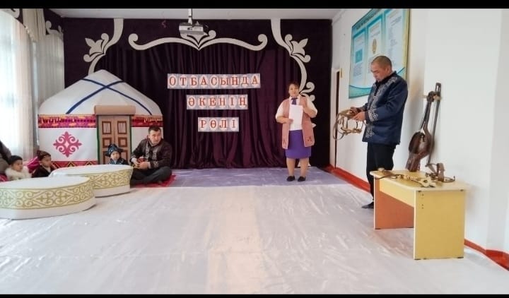 №1 санаториялық бөбекжай - бақшасы, Ортаңғы "Қызғалдақ" топ тəрбиешісі Боранбаева Гүлстан Жұмағалиқызының ұйымдастыруымен Əкелер мектебінің жұмыс жоспарына сəйкес "Отбасында əкенің рөлі" тақырыбында əкелермен тəрбие іс - əрекеті өткізілді. Мақсаты: Отбасындағы əкелердің бала тəрбиесіне көзқарасын кеңейту, жанұядағы əке мен бала арасындағы қарым - қатынасты нығайту. Ұлттық ойындарымызды ойнап, ұлттық құнды қазақи бұйымдарымызды балаларға таныстырып, насихаттау.