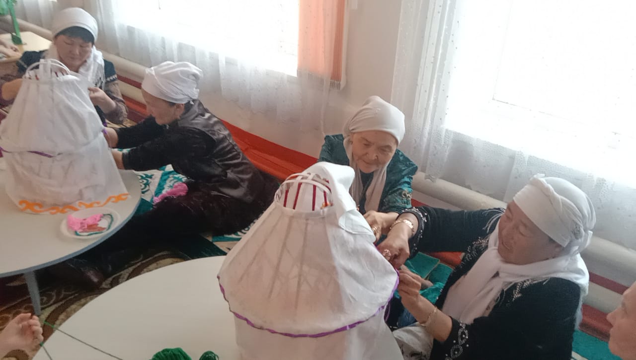 Мақсаты: Бөбекжай-бақша мен ата-аналар арасындағы тығыз байланысты орнату.Балаларға ертеден келе жатқан салт-дəстүрімізге байланысты құндылықтарымыз туралы мағлұмат бере отырып, киіз үйді жабдықтаудың жасалу жолын меңгерту.