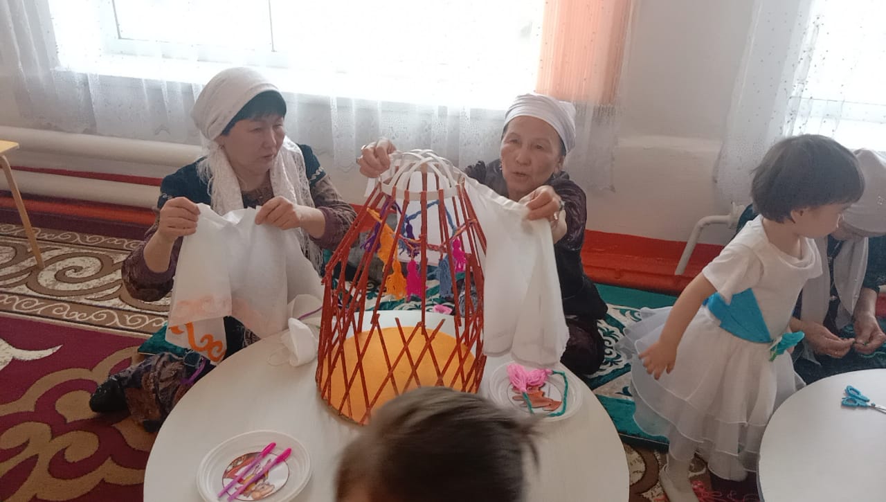 Тəрбие іс-əрекетіне əжелеріміз жақсы дайындықпен келіп, ұлтымыздың болашағы ұрпағымызға салт-дəстүрлерімізді дəріптей отырып, нақты киіз үй жабдықтарымен таныстырып жəне оны қалай пайдаланатынын түсіндіріп, киіз үйді жабдықтап берді.Жұмыс жасай отырып