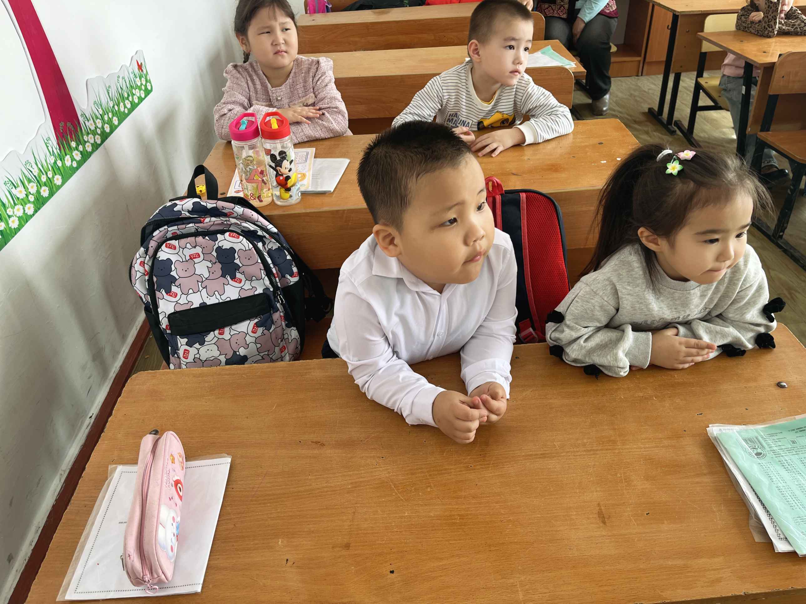Мектепке келгелі отырған тәрбиеленушілердің жеке басының ерекшеліктерімен балалардың даму деңгейімен танысты.Бастауыш сынып мұғалімдері бүгінгі күні мектеп жасына дейінгі балалардың сөзге қызығушылығын байқады.Балалардың мектепке қызығушылығын байқаған мектеп мұғалімдері Мектепалды”Шапағат” топ тәрбиеленушілеріне алдағы уақыттарына сәттілік тіледі.